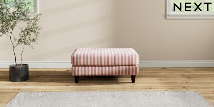7.2.6 Buy Hartley Highback Relaxed Sit Footstool Bold Chenille Stripe Dark Pink Low Conical - Dark from the Next UK online shop Click here to use our accessible website