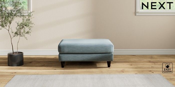 7.2.10 Buy Hartley Highback Relaxed Sit Footstool Fine Chenille Easy Clean Mid Blue Low Conical - Dark from the Next UK online shop Click here to use our accessible website