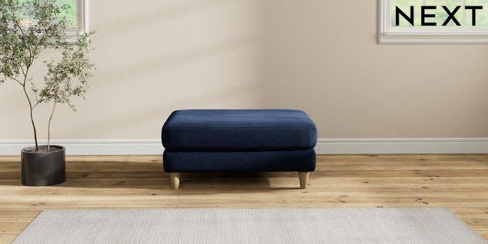 7.2.10 Buy Hartley Highback Relaxed Sit Footstool Luxe Chenille Navy Blue Low Conical - Light from the Next UK online shop Click here to use our accessible website