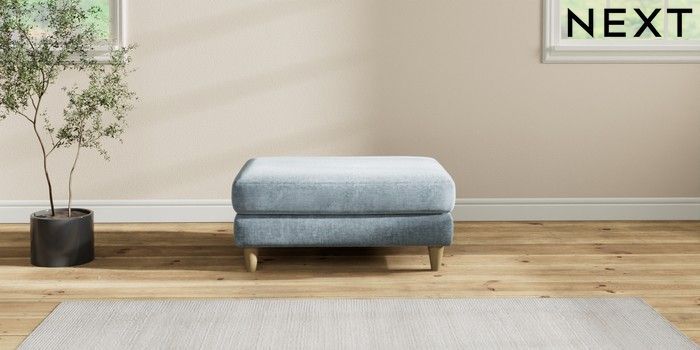 7.2.6 Buy Hartley Highback Relaxed Sit Footstool Plush Chenille Light Blue Low Conical - Light from the Next UK online shop Click here to use our accessible website