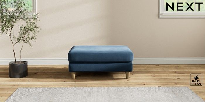 7.2.10 Buy Hartley Highback Relaxed Sit Footstool Plush Velvet Easy Clean Airforce Blue Low Conical - Light from the Next UK online shop Click here to use our accessible website