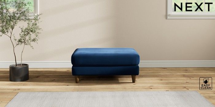 7.2.10 Buy Hartley Highback Relaxed Sit Footstool Plush Velvet Easy Clean Navy Blue Low Conical - Mid from the Next UK online shop Click here to use our accessible website