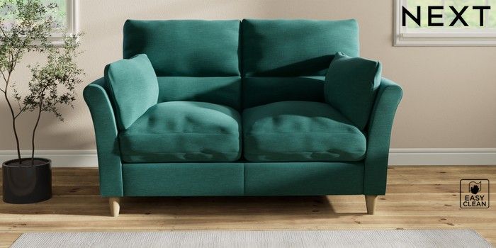 7.2.10 Buy Hartley Highback Relaxed Sit 2 Seater Sofa Fine Chenille Easy Clean Dark Juniper Green Low Conical - Light from the Next UK online shop Click here to use our accessible website