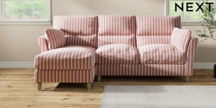 7.3.1 Buy Hartley Highback Relaxed Sit Medium Sofa Chaise - Left Hand Bold Chenille Stripe Dark Pink Low Conical - Light from the Next UK online shop
