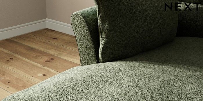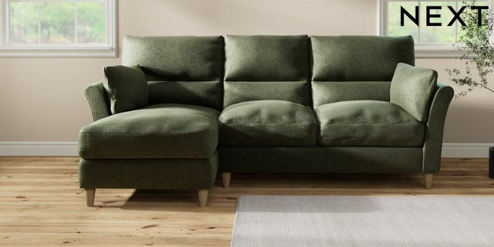 7.3.1 Buy Hartley Highback Relaxed Sit Medium Sofa Chaise - Left Hand Boucle Chenille Dark Moss Green Low Conical - Light from the Next UK online shop