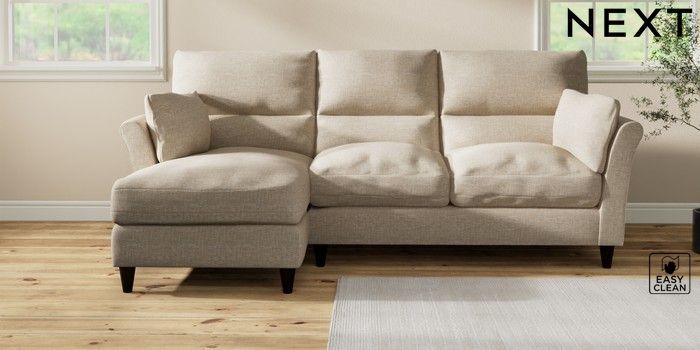 7.3.1 Buy Hartley Highback Relaxed Sit Medium Sofa Chaise - Left Hand Boucle Weave Easy Clean Dark Natural Low Conical - Dark from the Next UK online shop
