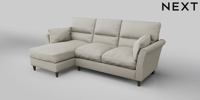 6.12.1 Buy Hartley Highback Relaxed Sit Medium Sofa Chaise - Left Hand Chenille Stripe Moss Green Low Conical - Mid from the Next UK online shop Click here to use our accessible website