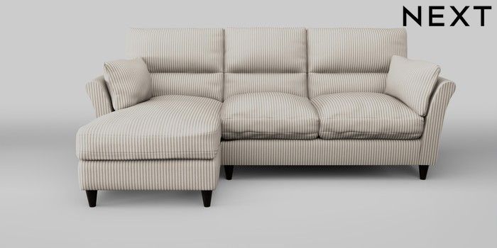 7.0.3 Buy Hartley Highback Relaxed Sit Medium Sofa Chaise - Left Hand Chenille Stripe Natural Low Conical - Dark from the Next UK online shop Click here to use our accessible website