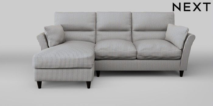 7.0.3 Buy Hartley Highback Relaxed Sit Medium Sofa Chaise - Left Hand Chenille Stripe Slate Blue Low Conical - Dark from the Next UK online shop Click here to use our accessible website