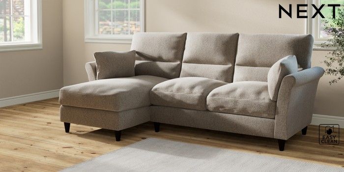 7.2.10 Buy Hartley Highback Relaxed Sit Medium Sofa Chaise - Left Hand Chunky Boucle Easy Clean Dove Low Conical - Dark from the Next UK online shop Click here to use our accessible website