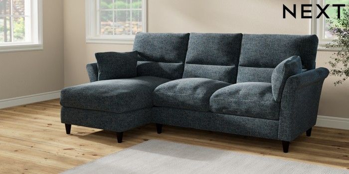7.2.10 Buy Hartley Highback Relaxed Sit Medium Sofa Chaise - Left Hand Chunky Chenille Dark Navy Blue Low Conical - Dark from the Next UK online shop Click here to use our accessible website