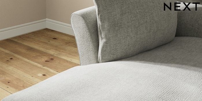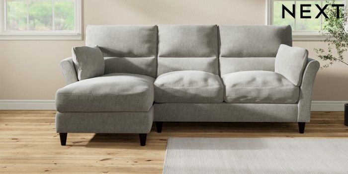 7.3.1 Buy Hartley Highback Relaxed Sit Medium Sofa Chaise - Left Hand Chunky Chenille Light Grey Low Conical - Dark from the Next UK online shop