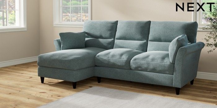 7.2.10 Buy Hartley Highback Relaxed Sit Medium Sofa Chaise - Left Hand Chunky Chenille Light Teal Green Low Conical - Dark from the Next UK online shop Click here to use our accessible website