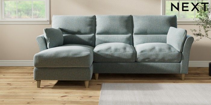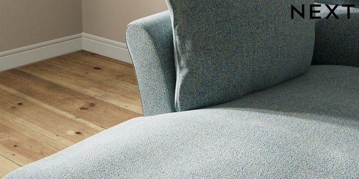 7.3.1 Buy Hartley Highback Relaxed Sit Medium Sofa Chaise - Left Hand Chunky Marl Mid Blue Low Conical - Light from the Next UK online shop