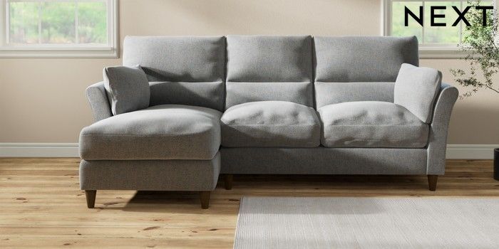 7.3.1 Buy Hartley Highback Relaxed Sit Medium Sofa Chaise - Left Hand Chunky Marl Mid Grey Low Conical - Mid from the Next UK online shop Click here to use our accessible website