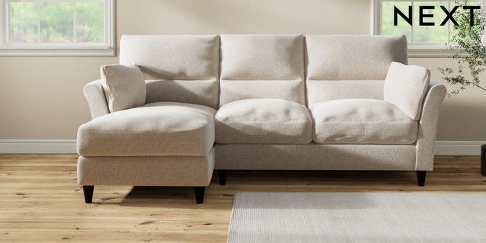 7.3.1 Buy Hartley Highback Relaxed Sit Medium Sofa Chaise - Left Hand Chunky Marl Oyster Low Conical - Dark from the Next UK online shop