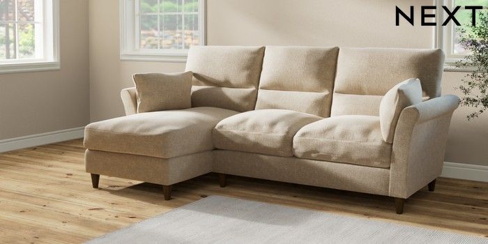 7.2.10 Buy Hartley Highback Relaxed Sit Medium Sofa Chaise - Left Hand Chunky Weave Cream Low Conical - Mid from the Next UK online shop Click here to use our accessible website