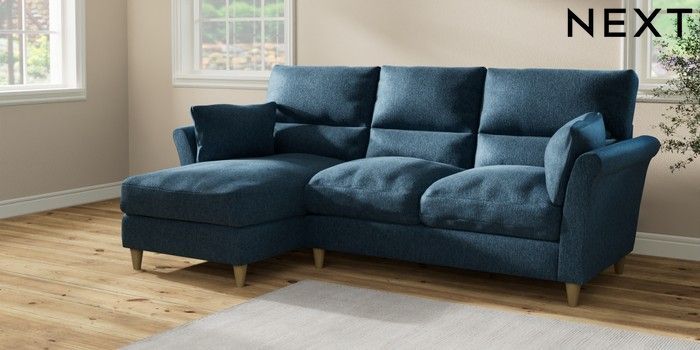7.2.10 Buy Hartley Highback Relaxed Sit Medium Sofa Chaise - Left Hand Cotswold Chenille Dark Blue Low Conical - Light from the Next UK online shop Click here to use our accessible website