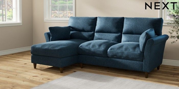 7.2.10 Buy Hartley Highback Relaxed Sit Medium Sofa Chaise - Left Hand Cotswold Chenille Dark Blue Low Conical - Mid from the Next UK online shop Click here to use our accessible website