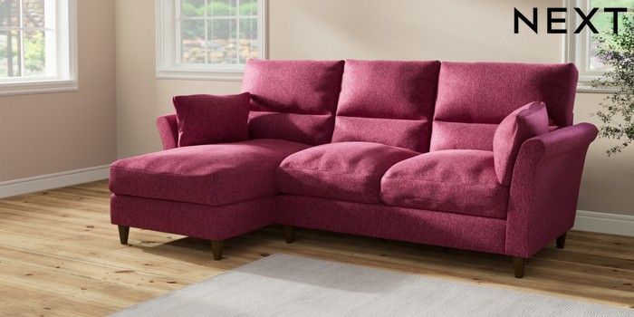 7.2.10 Buy Hartley Highback Relaxed Sit Medium Sofa Chaise - Left Hand Cotswold Chenille Dark Raspberry Pink Low Conical - Mid from the Next UK online shop Click here to use our accessible website