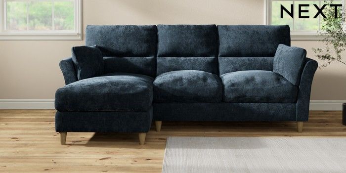 7.3.1 Buy Hartley Highback Relaxed Sit Medium Sofa Chaise - Left Hand Distressed Velour Midnight Blue Low Conical - Light from the Next UK online shop