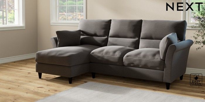 7.2.10 Buy Hartley Highback Relaxed Sit Medium Sofa Chaise - Left Hand Fine Chenille Easy Clean Dark Smoke Grey Low Conical - Dark from the Next UK online shop Click here to use our accessible website