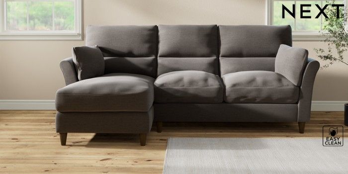 7.3.1 Buy Hartley Highback Relaxed Sit Medium Sofa Chaise - Left Hand Fine Chenille Easy Clean Dark Smoke Grey Low Conical - Mid from the Next UK online shop