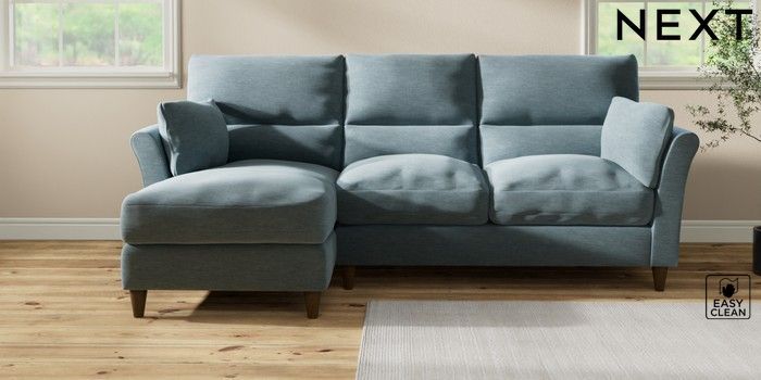 7.3.1 Buy Hartley Highback Relaxed Sit Medium Sofa Chaise - Left Hand Fine Chenille Easy Clean Mid Blue Low Conical - Mid from the Next UK online shop