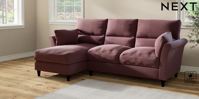 7.2.10 Buy Hartley Highback Relaxed Sit Medium Sofa Chaise - Left Hand Fine Chenille Easy Clean Mid Mulberry Purple Low Conical - Dark from the Next UK online shop Click here to use our accessible website