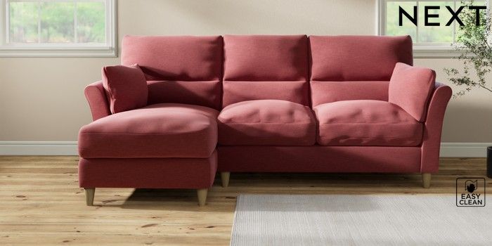 7.3.1 Buy Hartley Highback Relaxed Sit Medium Sofa Chaise - Left Hand Fine Chenille Easy Clean Mid Pink Low Conical - Light from the Next UK online shop