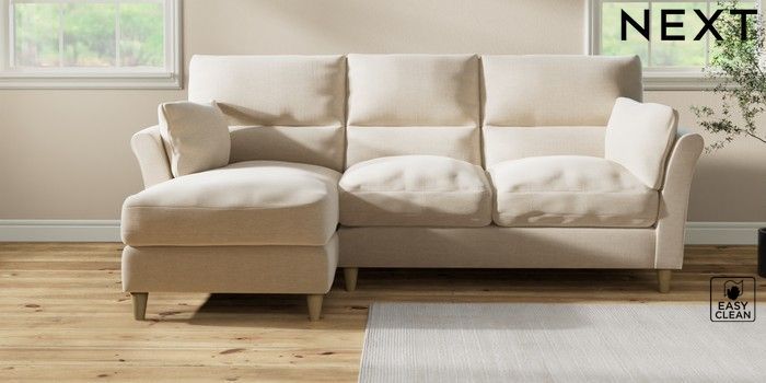 7.3.1 Buy Hartley Highback Relaxed Sit Medium Sofa Chaise - Left Hand Fine Chenille Easy Clean Oyster Low Conical - Light from the Next UK online shop