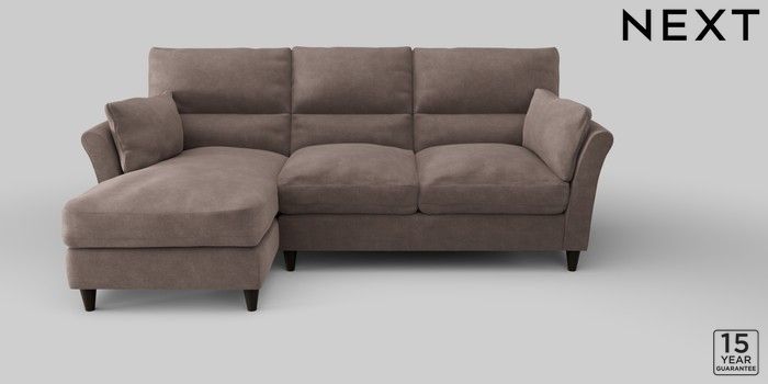 6.12.1 Buy Hartley Highback Relaxed Sit Medium Sofa Chaise - Left Hand Luxe Chenille Mink Brown Low Conical - Dark from the Next UK online shop Click here to use our accessible website