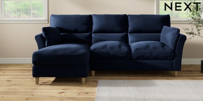 7.3.1 Buy Hartley Highback Relaxed Sit Medium Sofa Chaise - Left Hand Luxe Chenille Navy Blue Low Conical - Light from the Next UK online shop