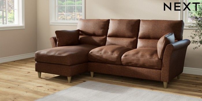 7.2.10 Buy Hartley Highback Relaxed Sit Medium Sofa Chaise - Left Hand Monza Faux Leather Easy Clean Chestnut Brown Low Conical - Light from the Next UK online shop Click here to use our accessible website
