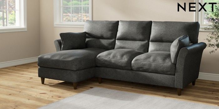 7.2.10 Buy Hartley Highback Relaxed Sit Medium Sofa Chaise - Left Hand Plush Chenille Dark Grey Low Conical - Mid from the Next UK online shop Click here to use our accessible website