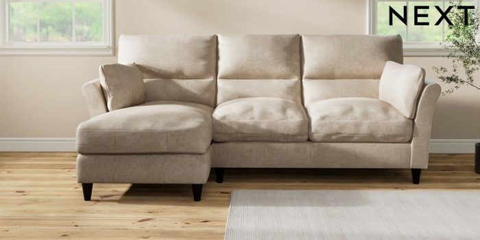 7.3.1 Buy Hartley Highback Relaxed Sit Medium Sofa Chaise - Left Hand Plush Chenille Light Natural Low Conical - Dark from the Next UK online shop