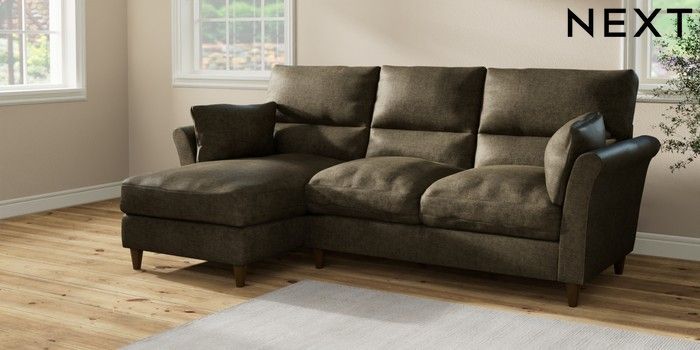 7.2.10 Buy Hartley Highback Relaxed Sit Medium Sofa Chaise - Left Hand Plush Chenille Moss Green Low Conical - Mid from the Next UK online shop Click here to use our accessible website
