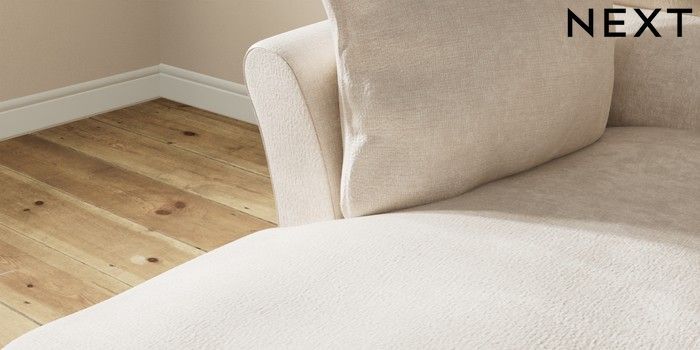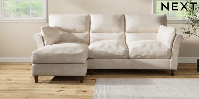 7.3.1 Buy Hartley Highback Relaxed Sit Medium Sofa Chaise - Left Hand Plush Chenille Oyster Low Conical - Mid from the Next UK online shop Click here to use our accessible website