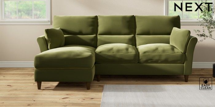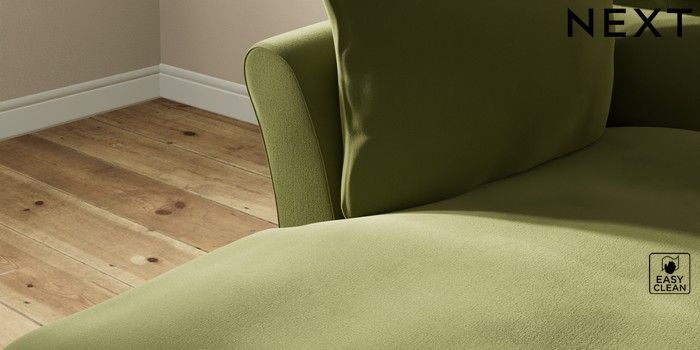 7.3.1 Buy Hartley Highback Relaxed Sit Medium Sofa Chaise - Left Hand Plush Velvet Easy Clean Mid Olive Green Low Conical - Mid from the Next UK online shop