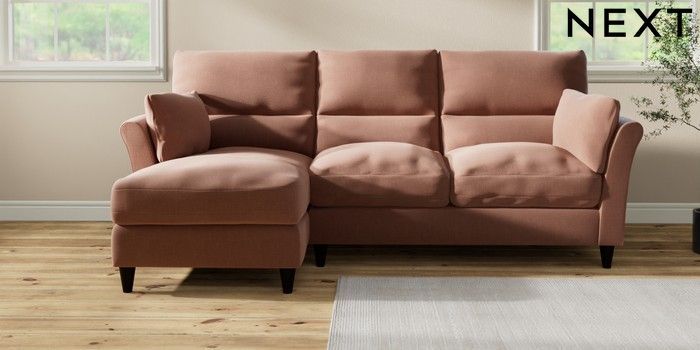 7.3.1 Buy Hartley Highback Relaxed Sit Medium Sofa Chaise - Left Hand Relaxed Linen Look Light Rust Brown Low Conical - Dark from the Next UK online shop