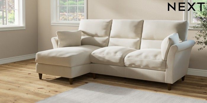 7.2.10 Buy Hartley Highback Relaxed Sit Medium Sofa Chaise - Left Hand Relaxed Linen Look Oyster Low Conical - Mid from the Next UK online shop Click here to use our accessible website