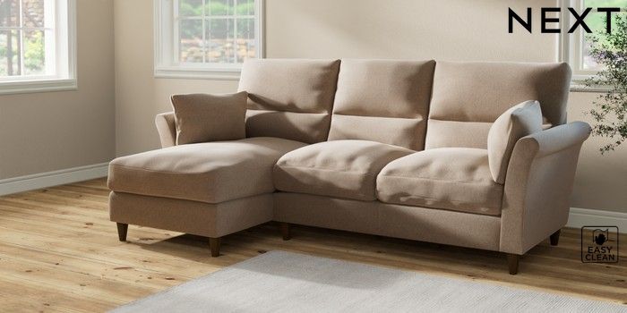 7.2.10 Buy Hartley Highback Relaxed Sit Medium Sofa Chaise - Left Hand Tweedy Blend Easy Clean Light Dove Natural Low Conical - Mid from the Next UK online shop Click here to use our accessible website
