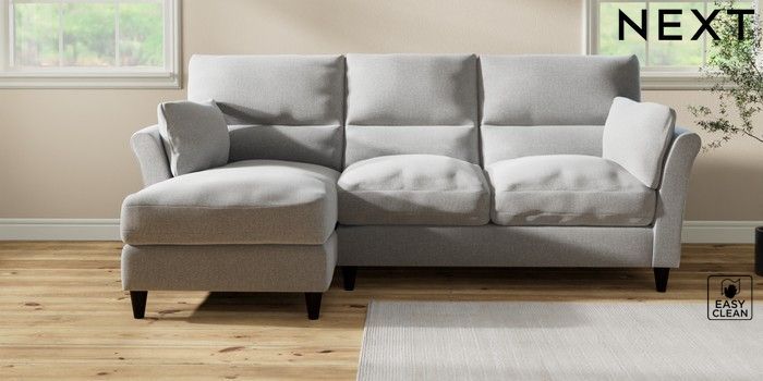 7.3.1 Buy Hartley Highback Relaxed Sit Medium Sofa Chaise - Left Hand Tweedy Blend Easy Clean Light Silver Grey Low Conical - Dark from the Next UK online shop