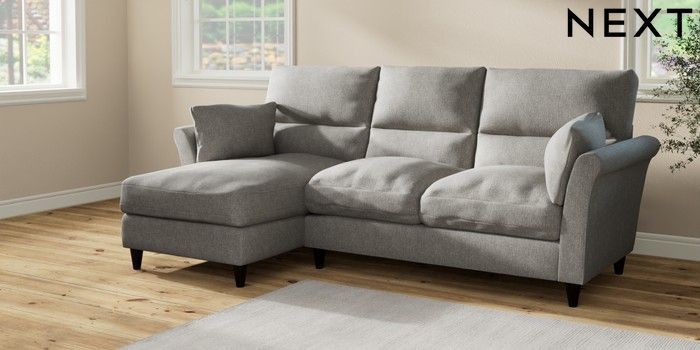 7.2.10 Buy Hartley Highback Relaxed Sit Medium Sofa Chaise - Left Hand Tweedy Chenille Mid Grey Low Conical - Dark from the Next UK online shop Click here to use our accessible website