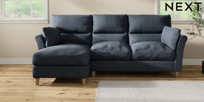 7.3.1 Buy Hartley Highback Relaxed Sit Medium Sofa Chaise - Left Hand Tweedy Chenille Navy Blue Low Conical - Light from the Next UK online shop