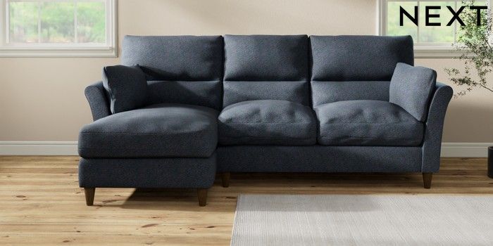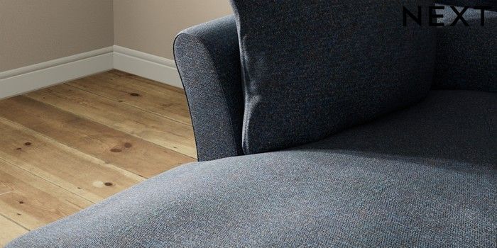 7.3.1 Buy Hartley Highback Relaxed Sit Medium Sofa Chaise - Left Hand Tweedy Chenille Navy Blue Low Conical - Mid from the Next UK online shop