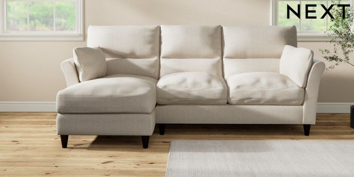 7.3.1 Buy Hartley Highback Relaxed Sit Medium Sofa Chaise - Left Hand Tweedy Chenille Oyster Low Conical - Dark from the Next UK online shop