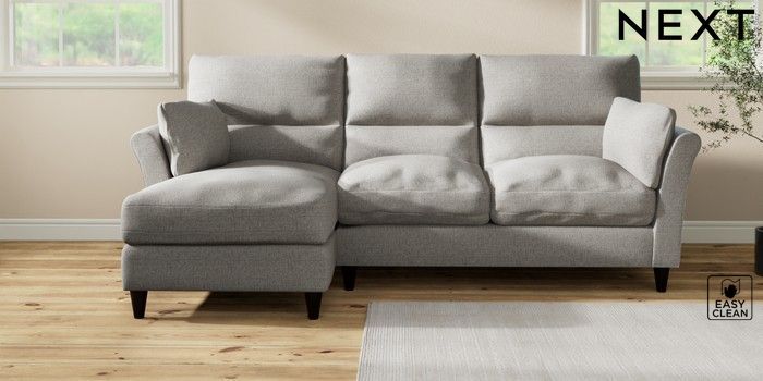 7.3.1 Buy Hartley Highback Relaxed Sit Medium Sofa Chaise - Left Hand Woven Chenille Easy Clean Light Grey Low Conical - Dark from the Next UK online shop