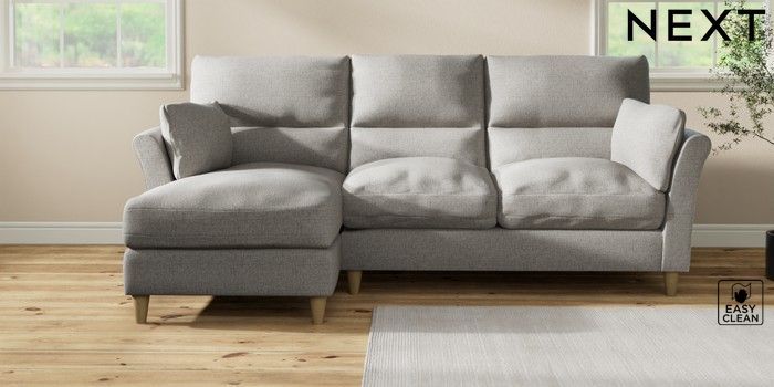 7.3.1 Buy Hartley Highback Relaxed Sit Medium Sofa Chaise - Left Hand Woven Chenille Easy Clean Light Grey Low Conical - Light from the Next UK online shop