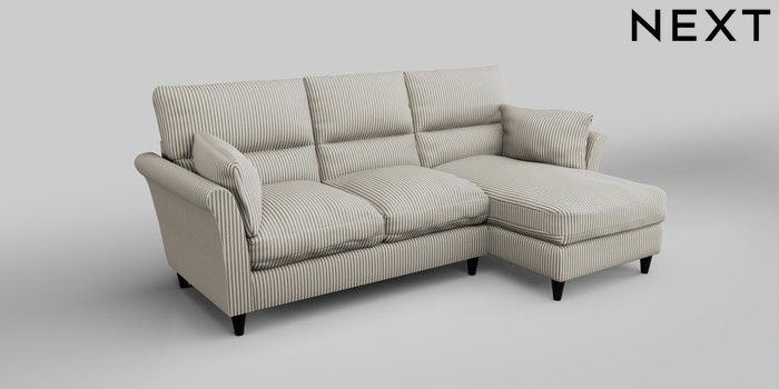6.12.1 Buy Hartley Highback Relaxed Sit Medium Sofa Chaise - Right Hand Chenille Stripe Moss Green Low Conical - Dark from the Next UK online shop Click here to use our accessible website